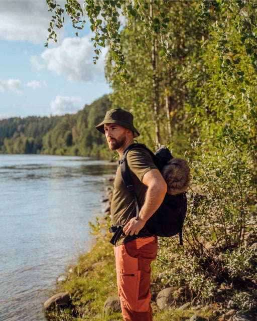 Solhatt i material med 4-vägsstretch för perfekt passform. Hakbandet är avtagbart ifall du vill bära endast hatten, och kan justeras och spännas åt med ett plastspänne. Tyget har UV-skydd och har dessutom en impregnering som håller mygg och fästingar borta från materialet.