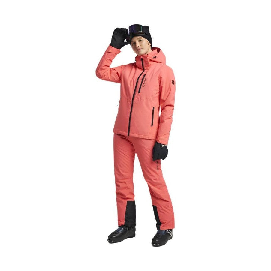 Moa Ski jacket är en isolerad skidjacka utrustad med Tensons MPC-teknik (WP 5.000mm / MP 5.000 g/m2/24h) som kombinerar mycket effektiv vattentäthet med god andningsförmåga för att hålla dig bekväm under snöiga, blåsiga och våta förhållanden på berget. Kommer med en värmande AirPush™ Insulate vaddering som är en fjäderlös stoppning som ger lätt vikt, utmärkt andningsförmåga och bra isolering för kalla väderförhållanden. Jackan är utrustad med en avtagbar och justerbar huva, förböjda ärmar och justerbara ärmavslut, dold liftkortsficka, snölås och en skön fleecefodrad