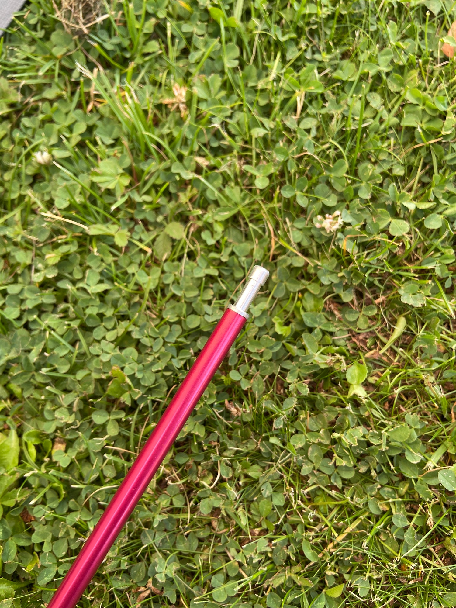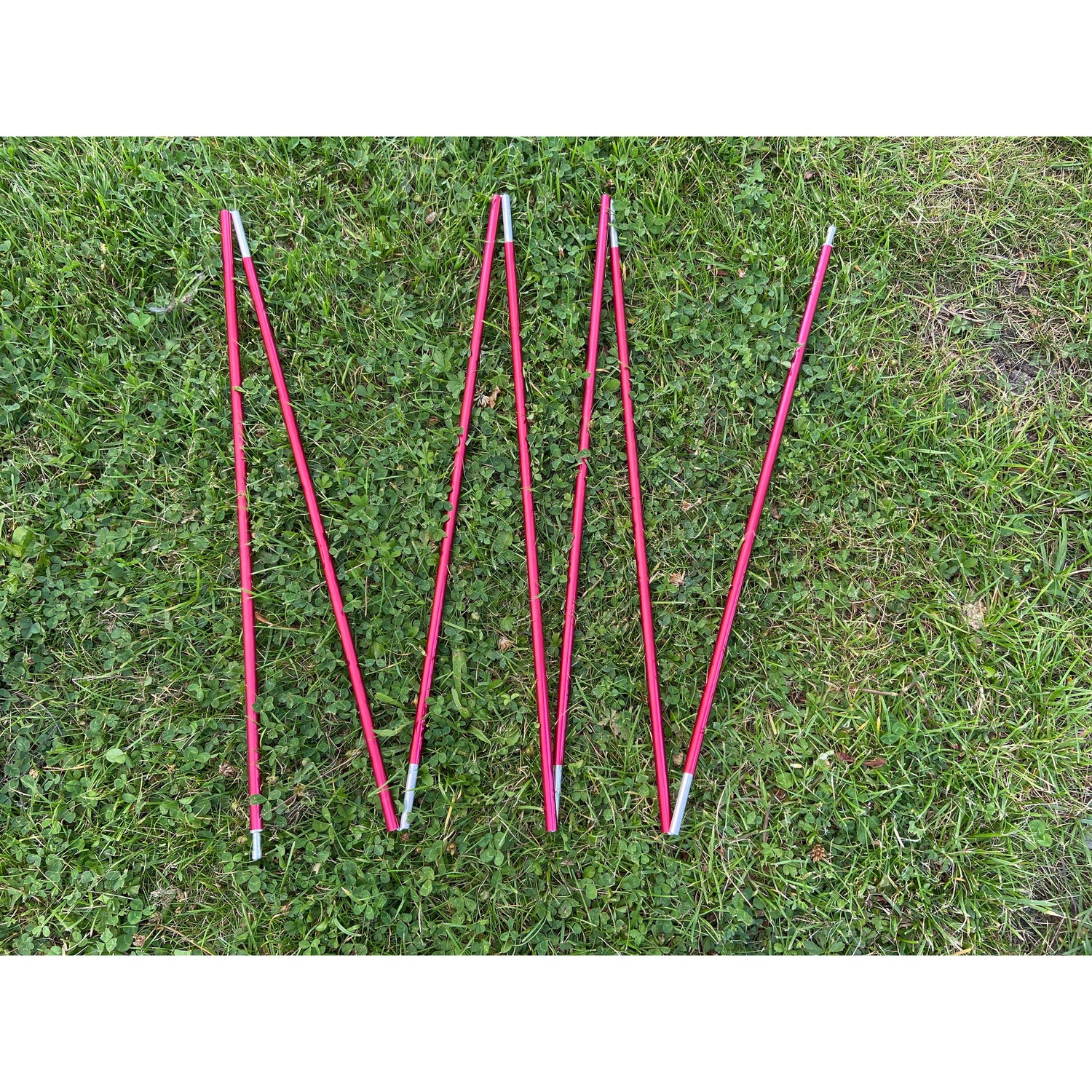 Aluminiumbåge till tält. Bågen består av 7 sektioner och fästes i en ögla på själva tältet.