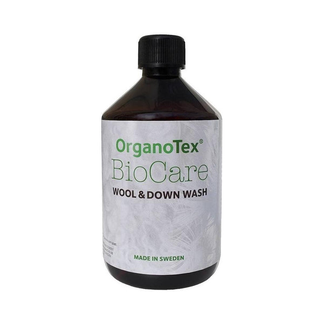 BioCare Wool & Down Wash är ett biobaserat fintvättmedel för ull och dun. Tvättmedlet innehåller lanolin, ullens naturliga fett, som återskapar ullens och dunets naturliga bra egenskaper. Innehåller även citroneukalyptusolja som har en antibakteriell funktion samt att den ger en svag fräsch doft. Dunplagg eller dunsovsäckar i nylon/ripstop som är i blankare material tar inte skada och bibehåller sin glans. När vattnet inte längre pärlar av dunjackan, kan plagget återimpregneras med OrganoTex Spray-On eller Wash-In Waterproofing för att förbättra vattenavvisningen.