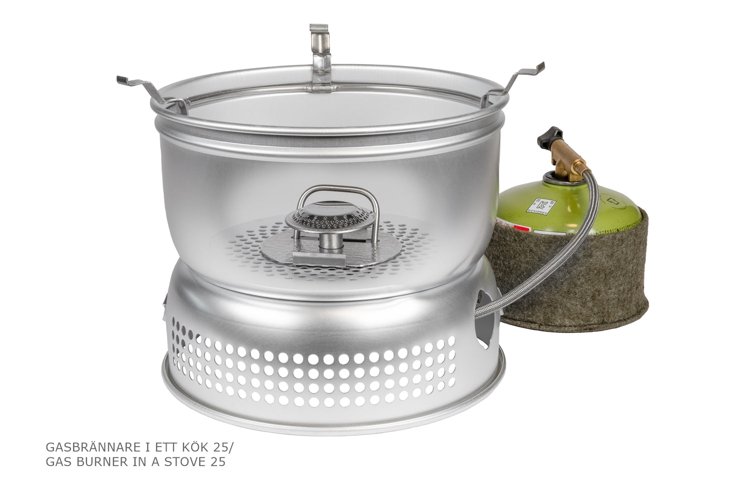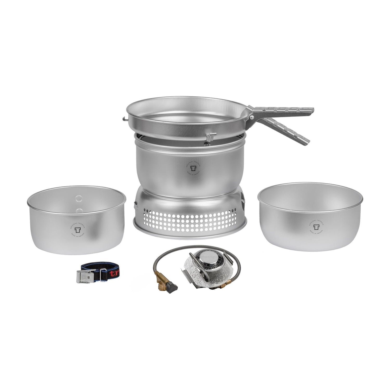 Trangiakök 25 kan kompletteras med kastruller och stekpannor i andra material, fodral, multi-disc och flera andra praktiska tillbehör.