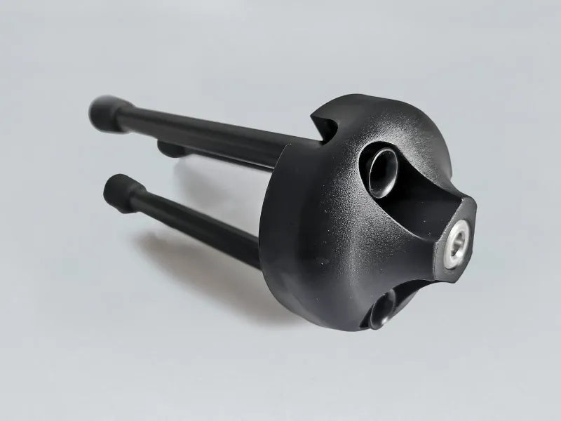 Gummiparkettkuddarna säkerställer ett halkfritt stativ. På grund av de hopfällbara fötterna kan stativet demonteras kompakt och tar väldigt lite plats i ryggsäcken.