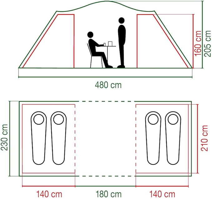 Rymligt och välventilerat tält med gott om plats för fyra personer. Bekvämt för långa och korta campingturer med ordentlig ståhöjd. Gemensam yta i mitten och två separata sovalkover som ger avskildhet. Blackout Bedroom i sovdelen ger mörkare, svalare och behagligare sömn. Blackout Bedroom blockerar upp till 99% av solljuset och gör att du kan sova längre under sommarens ljusa nätter. Vattentät ytterduk, tejpade sömmar och ett inbyggt golv ger dig ett tält som klarar alla väder.