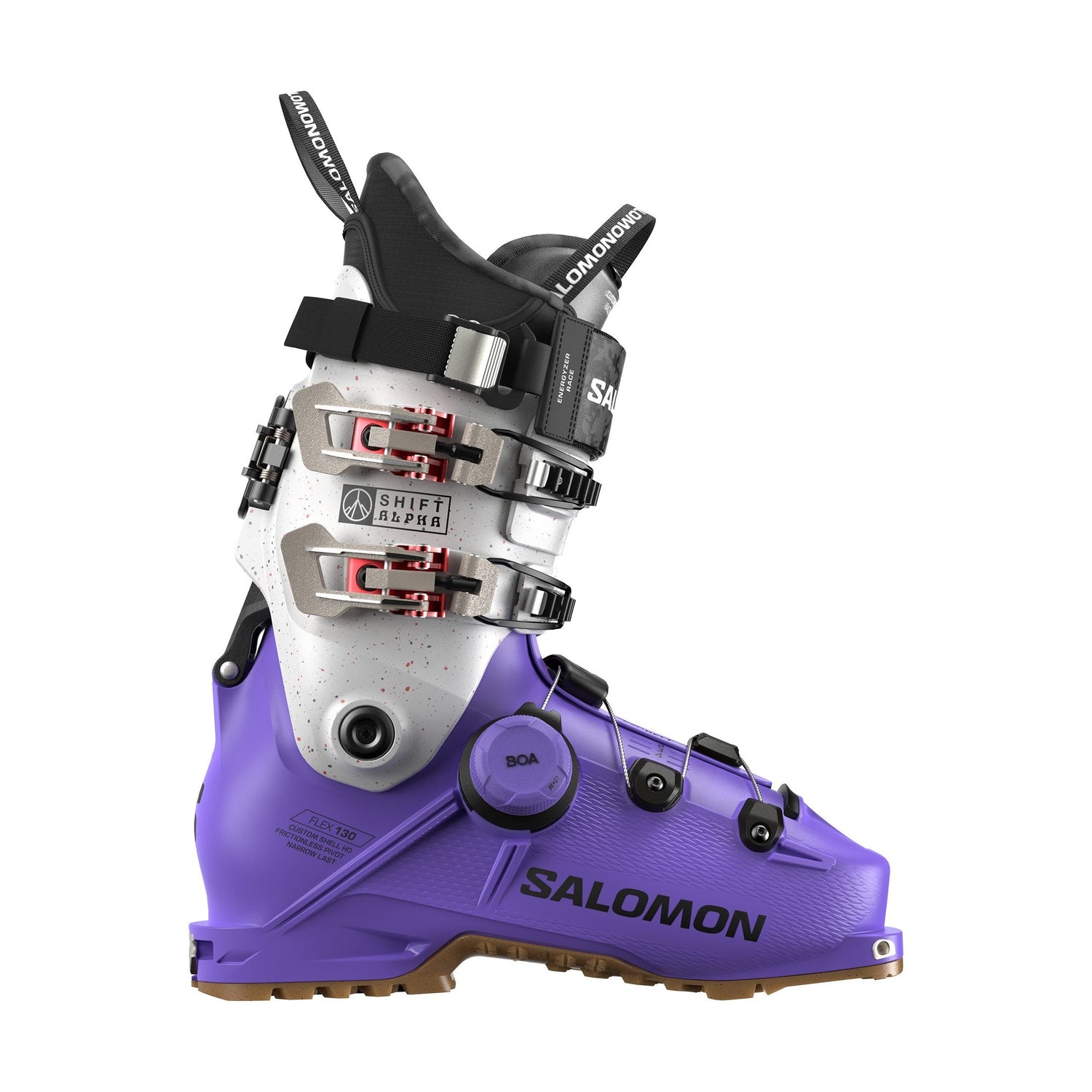 Salomon SHIFT ALPHA BOA® 130 är en äkta friåkningspjäxa med alpina funktioner som hjälper dig att bemästra skidturer både uppför och nedför. Pjäxans Freespine länkar manschetten till skalet för mer kraft och kontroll, medan Exobelt tillsammans med BOA® Fit System bidrar till en finjusterad, fotnära passform med hög prestanda för krävande förhållanden.