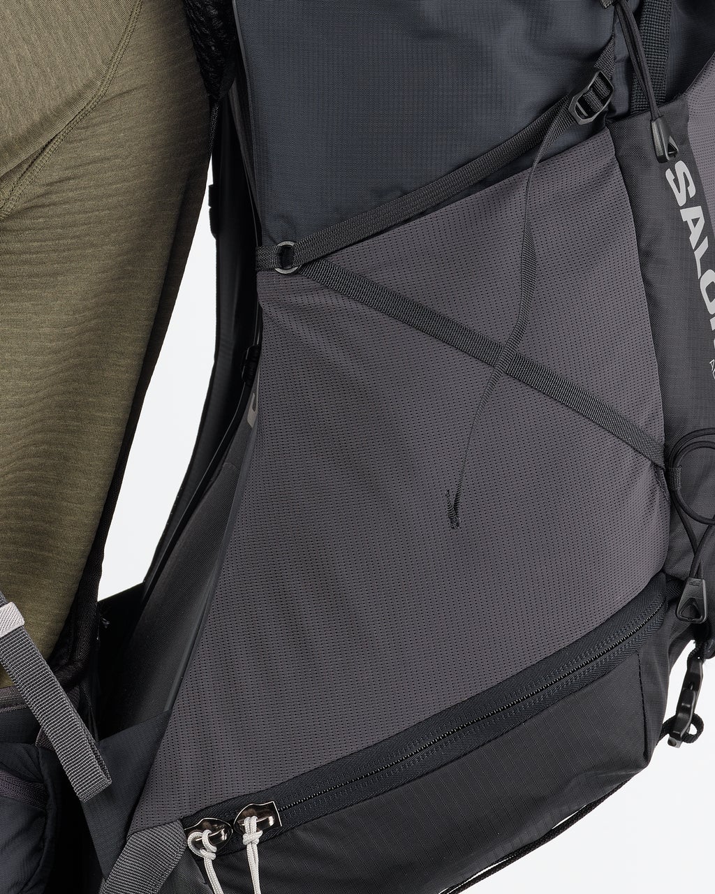 • Upphängd ryggpanel: Ryggsystemet är baserat på en upphängd struktur med endast ett lager av lätt mesh som vidrör ryggen för att låta luften flöda för förbättrad andningsförmåga.