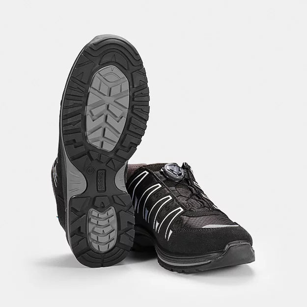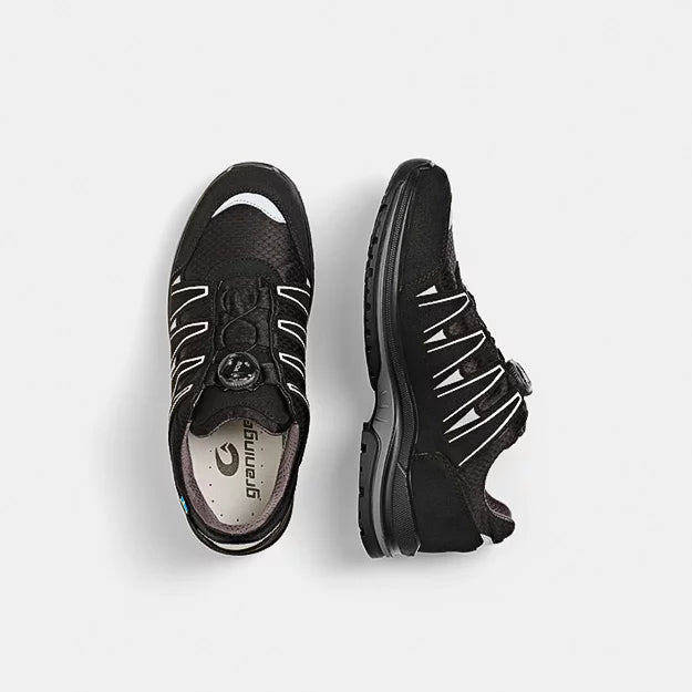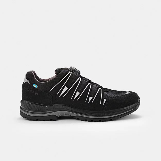Aspås är en sportig fritidssko, optimal för vandring i lättare terräng såväl som på asfalt. Den är tillverkad i stabilt konstmaterial och utrustad med GRANTEX®, Graninges vattenavvisande tex-membran. Skon har Boa®-snörning som gör det enkelt att komma i och den och du slipper skosnören som går upp. Boa®-snörningen försluter och fördelar stödet jämt runt foten utan tryck på enstaka ställen. Löstagbar innersula och reflexer på sidorna och bakkappan. Yttersulan i gummi är stötdämpande och ger ett stabilt grepp på underlaget.