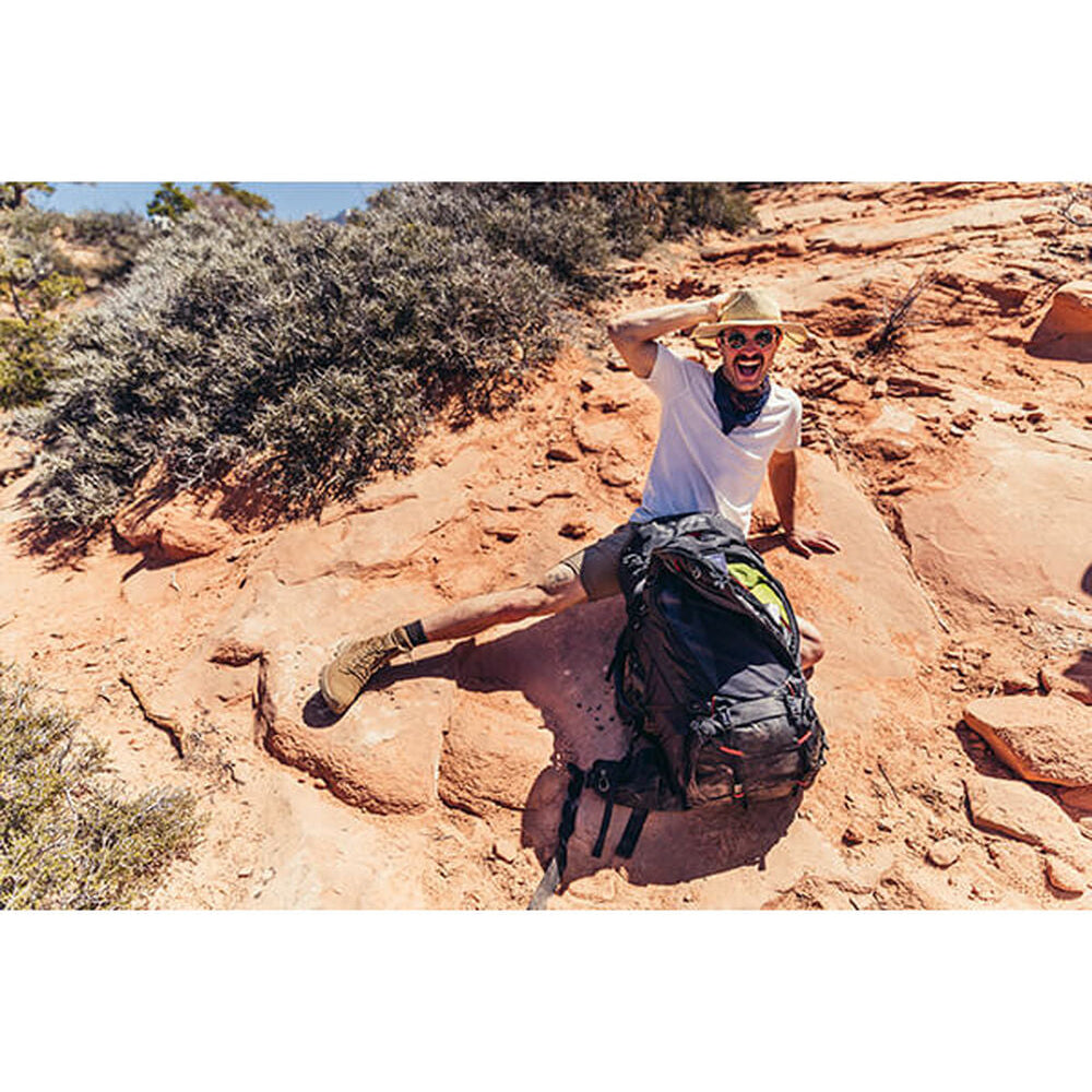 Ryggpanelen är gjord av ventilerande mesh som främjar luftcirkulation och hjälper till att hålla dig sval och bekväm under långa vandringar.