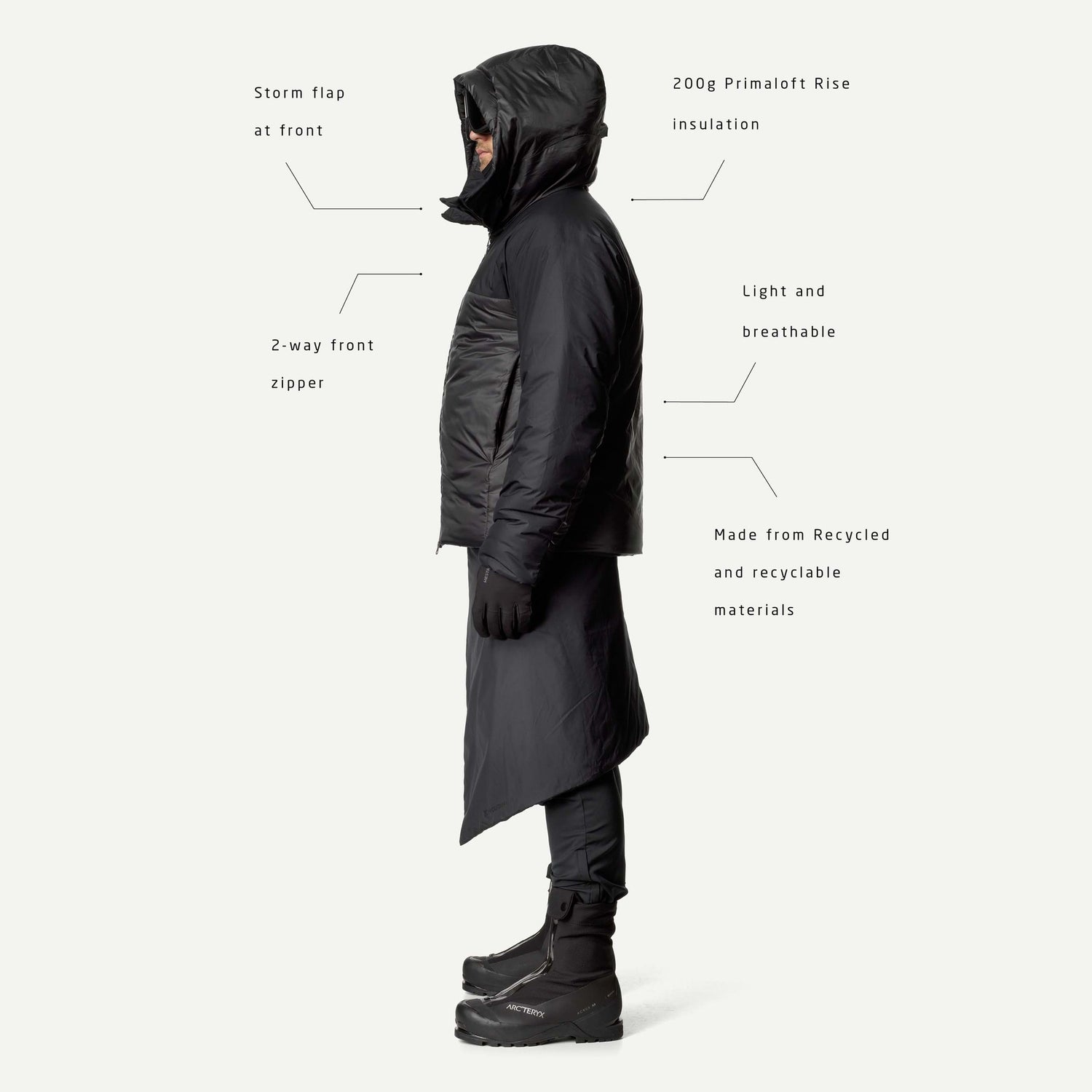 200 g PrimaLoft® Black Insulation RISE (170 g under armarna)