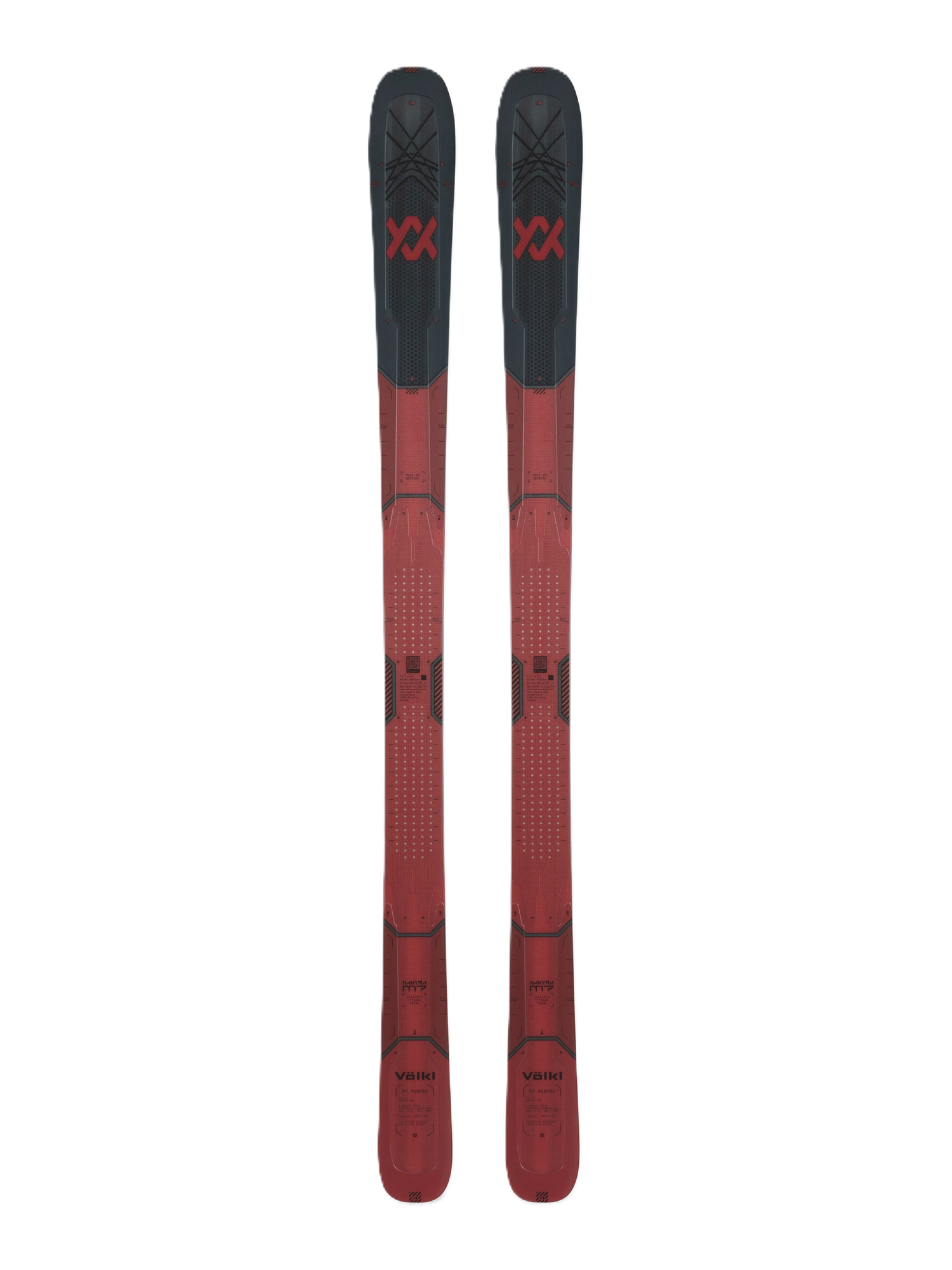 Precis som tidigare modeller använder VÖLKL M7 Mantra en Tailored Titanal Frame, där mängd och placering av Titanal är anpassad efter varje längd. Det ger rätt vridstyvhet, dämpning och kraftöverföring för olika åkare, samtidigt som skidan blir lättare och mer lätthanterlig än traditionella Titanal-skidor. Tillsammans med Tailored Carbon Tips, där kolfibrerna placeras exakt längs belastningslinjerna, får du snabbare respons i spetsen och ökad vridstyvhet.