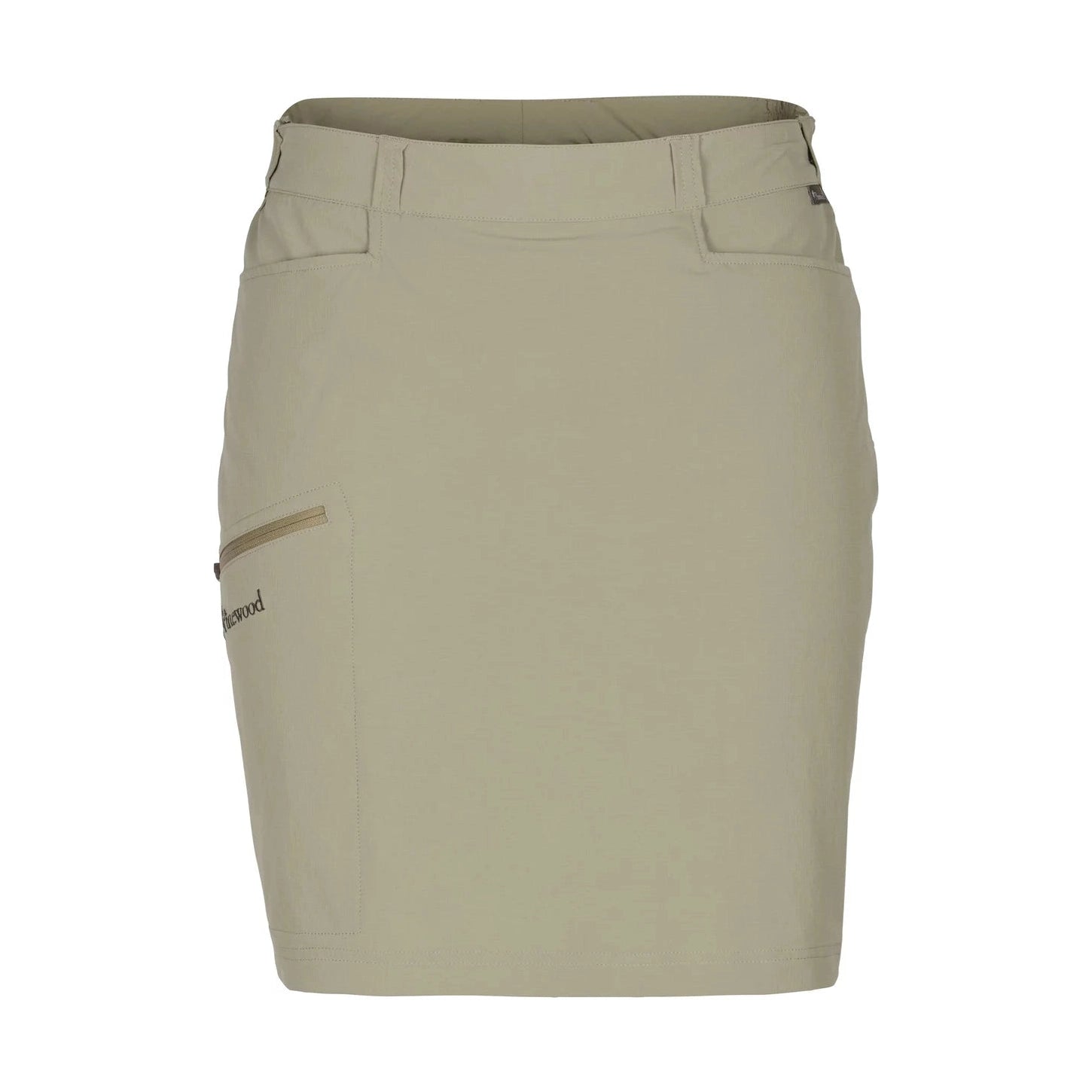 Finnveden Hiking skort är en damkjol i något längre modell med inbyggda stretchshorts, vilket gör den skön att bära till många sorters aktiviteter. Tyget består av återvunnen polyester och är bluesign®-certifierat, vilket innebär att det har tillverkats enligt strikta säkerhets- och miljökrav. Det är även UV-säkert och har ripstop-egenskaper, så om det blir en reva i tyget kommer det inte att rivas upp ytterligare. Skorten är väldigt stretchig och har lätt vikt och är därmed smidig att packa ned i väskan. Den har två handfickor samt en ficka fram med dragkedja för säker förvaring. Materialet är snabbtorkande så skulle du bli blöt eller svettig så behöver du inte vara det länge.