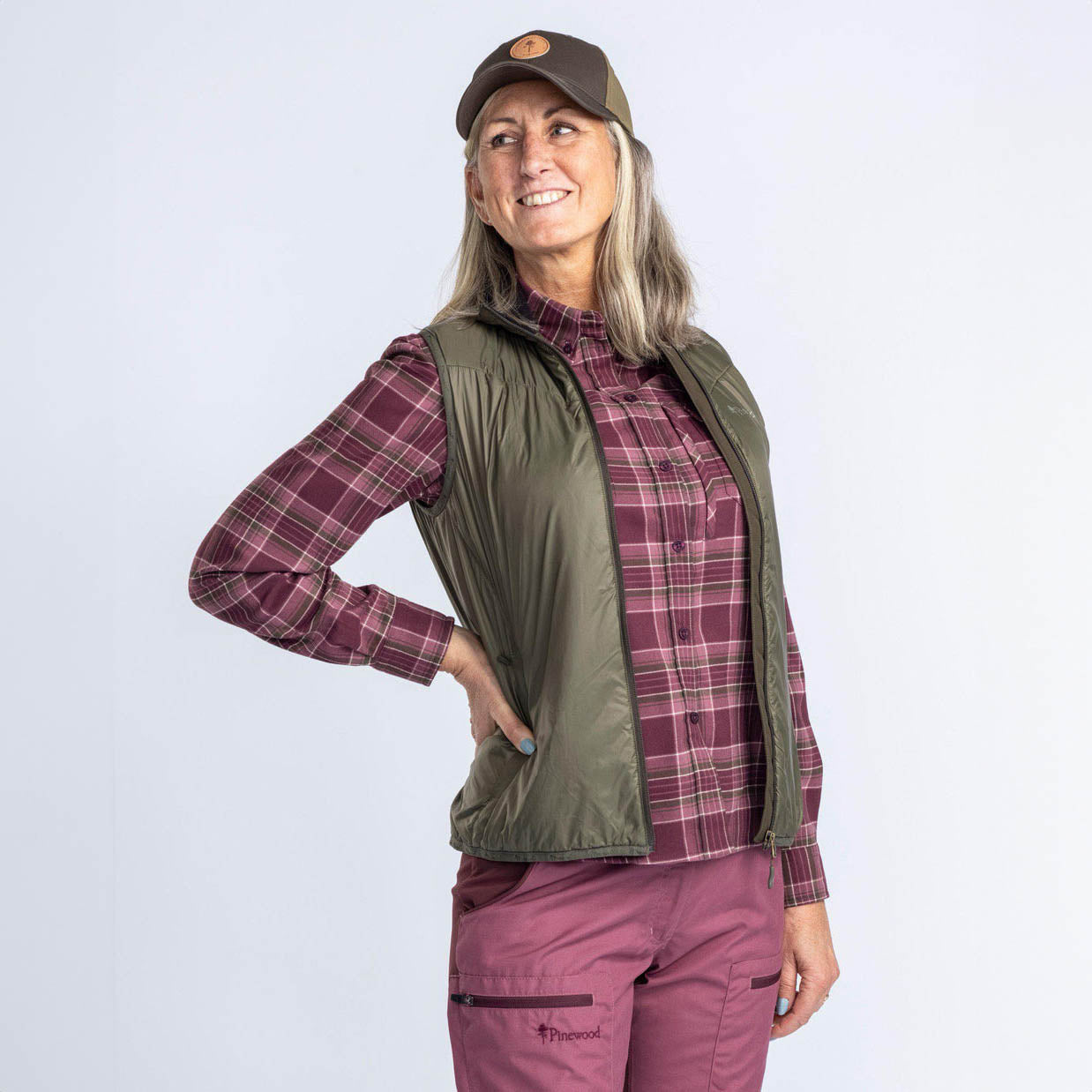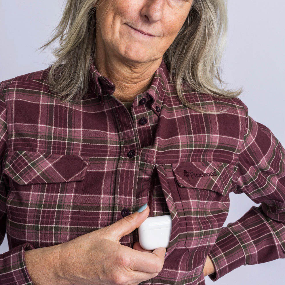 Abisko Hiking skjorta för dam i mjuk flanell är stretchig och smidig med hög andningsförmåga. Materialet är tillverkat av återvunnen polyester samt innehåller CoolMax®-fibrer som är fukttransporterande och snabbtorkande. Blir du svettig eller blöt kommer materialet transportera bort fukten till plaggets yta, och du håller dig därmed varm även i fysiskt ansträngande förhållanden. Skjortan har flera praktiska fickor; två bröstfickor med smidig kardborrestängning samt en bröstficka med dragkedja som passar perfekt för förvaring av kartan under turen. På insidan av höger linning finns en inbyggd glasögonservett där du enkelt kan putsa dina glasögon eller solglasögon.