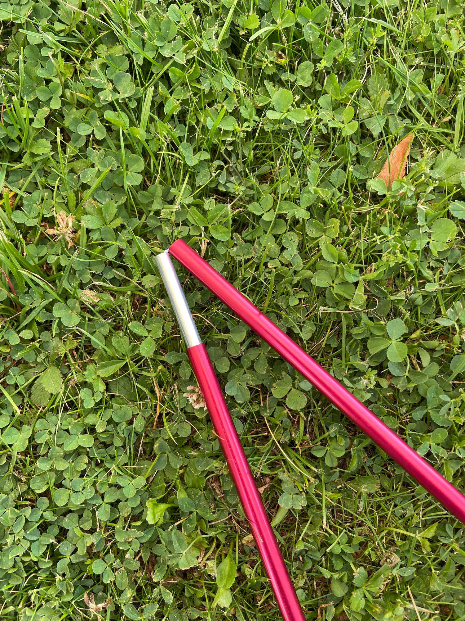 Aluminiumbåge till tält. Bågen består av 7 sektioner och fästes i en ögla på själva tältet.