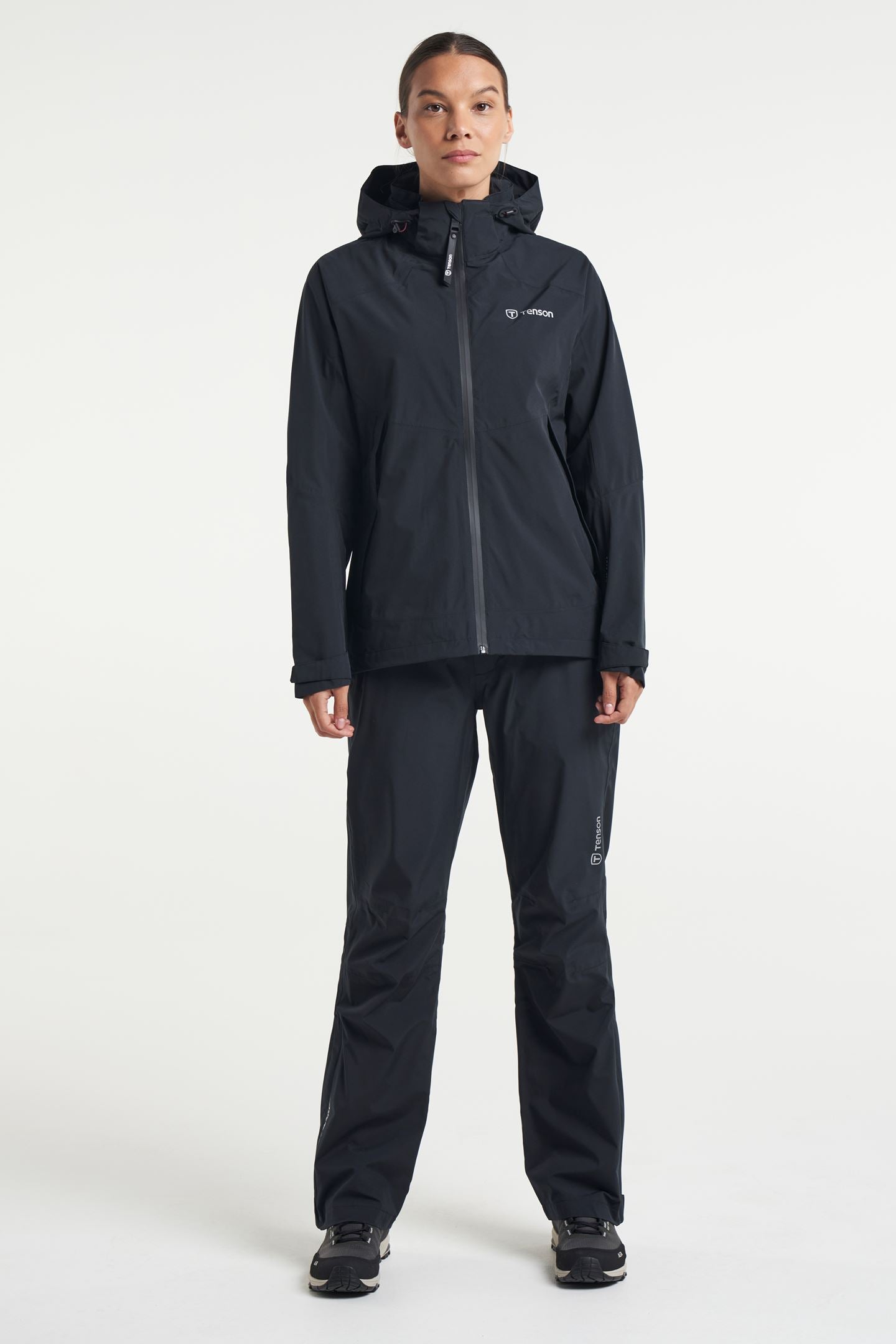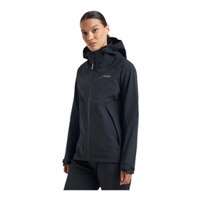 Med ett rejält regnset anpassat för dam är du redo för äventyr både i skogen, på sjön och på vandringen. Så länge du är varm och torr spelar regnet ingen roll så investera i riktigt bra regnkläder. Jackan har tätade sömmar, vattenavvisande blixtlås och justerbara ärmar och fåll för att hålla vattnet ute. Huvan är på och avtagbar så du kan plocka av den när du inte behöver den. Byxorna har elastisk midja för att sitta bekvämt samt dragkedja i slutet på benen så att de är lätta att ta på och av samt passar oavsett vilka skor du har. De har förböjda knän så att du kan röra dig ordentligt och enkelt sätta dig ner på huk utan att det stramar. Jackan matchas snyggt med de svarta byxorna.