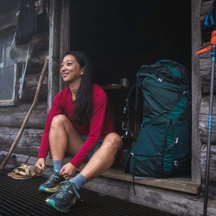 Eja är den perfekta damryggsäcken när varje gram räknas men du ändå behöver en pålitlig och stabil ryggsäck. Den mellanstora och ultralätta Eja 48 har gott om plats för packning, men är tillräckligt liten för att du inte ska frestas att lägga i för mycket. Mycket erfarna vandrare kommer att uppskatta den branschledande komforten och ventilationen – utan den extra vikt detta ofta medför – vilket gör det till den perfekta ryggsäcken för krävande thru-hike och lättviktsvandring. Behöver du trimma vikten ytterligare? En integrerad FlapJacket ersätter det avtagbara, flytande locket på ett ögonblick. Med vår förfinade AirSpeed-upphängning kan luften dessutom cirkulera mellan dig och ryggsäcken så att varje ny kilometer känns lika sval och bekväm som den föregående. Tillverkad av 100 procent återvunnet material.
