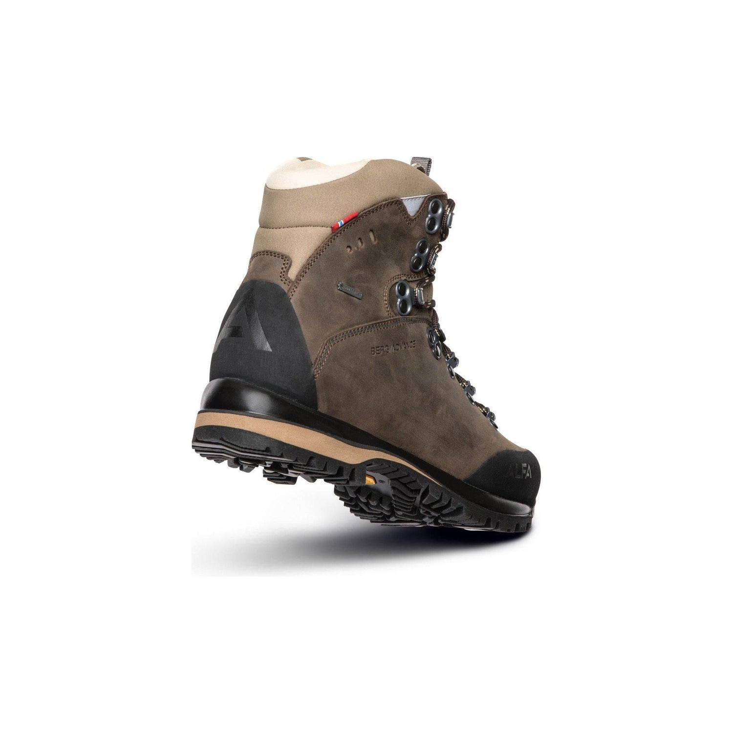 Alfa Berg är en känga i toppklass - oslagbar komfort, grepp och kvalitet gör att kängan blir din bästa vän även på vandringsturen. Något mjukare flex i sulan jämfört med Alfa Walk King/Queen. Kängan är tillverkad i oljad nubuck och försedd med Gore-Tex membran för att hålla dina fötter torra och svala under både väldigt blöta förhållanden och när solen gassar. Kängan har Memory Foam runt vristen som formar sig efter just din fot, detta tillsammans med den mjuka polstringen runt kängans överkant gör passformen suveränt skön.