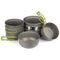 Kokset för två personer. 2 kokkärl med gryta och kåsa/kastrull/lock. Materialet är ett ultralätt och enormt slitstarkt, hårdanodiserat aluminium. De stora kärlen rymmer 1,0 respektive 0,8 liter. Set med 2 grytor och 2 kåsor som också kan användas som lock eller som grundare grytor. Hårdanodiseringen ger en non stick-liknande effekt utan att vara plast-baserad. Infällbara gummerade handtag på kastrullerna gör de enkla att hantera och smidigt at ta med.